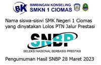 Daftar Siswa-siswi SMKN 1 Ciomas Lolos PTN Jalur Prestasi - SNBP 2023Berikut ini adalah daftar nama siswa-siswi SMKN 1 Ciomas yang berhasil lolos SNBP 2023